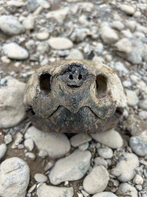 Weary and ready for rest I asked the river for a place to put-in for the night. I beached at the next little island and found a massive snapping turtle skull. That seemed like a good sign and a good a place as any to settle down. So, I pitched my tent among red and yellow striped lubbers and completely sacked out. It was a difficult day but the challenges ahead were about to get interesting and more complex . . .
