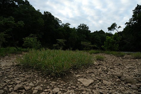 I launched and quickly found myself among a maze of shoals, drops, and rocky outcrops while fighting a headwind. The water levels—which were already coming down after the last flood—were dropping fast and the water was about 25% less murky than the day previous. While this made for an even clearer water experience, I was getting up close and personal with the rocks. Too close. Too personal. This entire stretch required all my attention and active paddling. Every bit of myself had to tune into the river’s course.